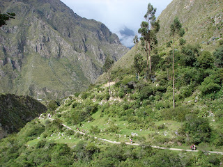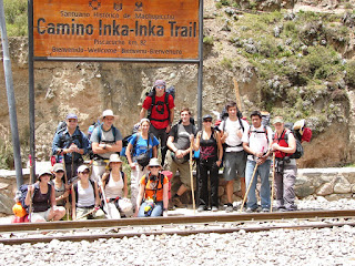 nach weiteren 30 minuten fahrt auf feldwegen, erreichen wir den ausgangspunkt der wanderung. da taeglich nur 500 personen auf den inkatrail duerfen, ist es am sammelpunkt auch gar nicht ueberfuellt. ca 20-25 agenturen mit ihren touristen, guides und porters (traeger) vermitteln einem das gefuehl des individualtourismusses, fernab der massen.