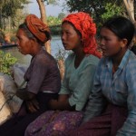 Aber damit wir noch etwas vom wahren Leben mitbekommen, stehen Besuche in einer Webstube und einer Töpferei an. Es ist interessant zu sehen, wie Textilien aus Lotus gefertigt werden. Vom Spalten der Fasern bis zum Weben der Kleidung. So faszinierend der Fertigungsprozess und schön das Produkt, so astronomisch sind die Preise, die da verlangt werden. Die Siedlung – ist es überhaupt eine Siedlung? Hier scheint Webstube neben Webstube zu stehen, an welchen die Boote mit Touristen anlegen – scheint mitten im See auf Pfählen erbaut zu sein. Konventionelle Straßen gibt es hier nicht, dafür führen Gräben und Kanäle durch die schwimmenden Gärten und die natürliche Vegetation des Sees, auf denen sich die Einheimischen zum Markt, zur Schule oder wer-weiß-wohin begeben. Immer wieder begegnen uns die kleinen Boote und die Frauen mit klassisch burmesischem Make-Up. Matte gelbliche Kreise auf den Wangen und die gleiche Farbe auf der Stirn, ersetzen hier L’Oreal und Maybelline. Ältere Damen tragen auch gerne ein gewickeltes Handtuch als Kopfbedeckung und zum Schutz vor der Sonne.
