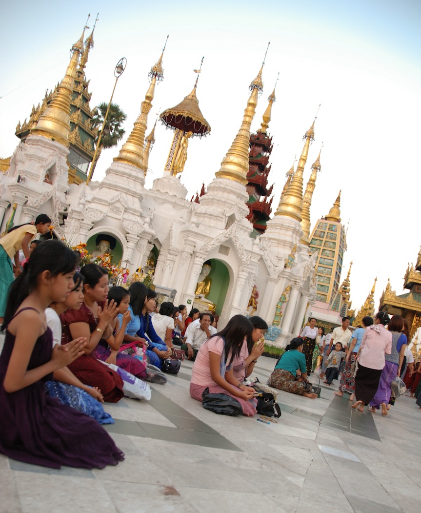 - Yangon – People praying at Shwedagon Pagoda